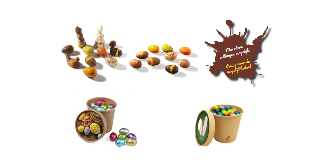 Veel paasgeschenken kunnen volledig in jouw huisstijl worden vormgegeven. Denk aan wikkels, sleeves, banderollen, kaartjes of zelfs bedrukkingen op de chocolade zelf. Dat is natuurlijk geweldig voor je merkbeleving, maar het betekent ook dat productie, drukwerk en afwerking vanzelfsprekend wat tijd nodig hebben.
